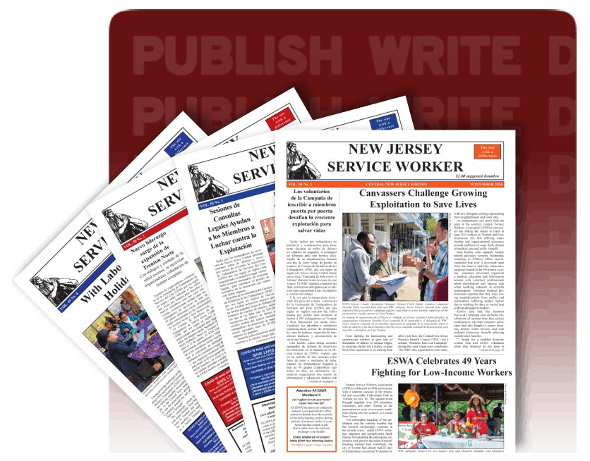New Jersey Service Worker is the publication of ESWA and the voice of service workers in Central New Jersey. First published in 1976, NJSW has consistently been a reliable source of news for ESWA members, volunteers, supporters and friends of service workers.